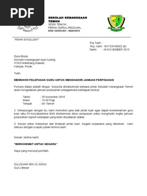 Surat Pelepasan Hadir Ke Sekolah Big Pdf